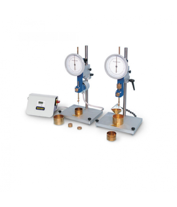 Cung cấp bao gồm : chân giá đỡ, mặt đồng hồ với vạch chia 0.1mm, nút nhấn thả kim, bộ phận điều khiển điện từ tự động giữ kim trong 5 giây, quả gia tải 50g và 100g, kim lún, hai cốc mẫu 55 x 35mm và 70 x 45mm và tài liệu sử dụng.
