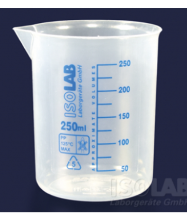 Cốc nhựa được sản xuất từ nhựa PP siêu trong theo tiêu chuẩn ISO 7056 với thành dày ngăn ngừa vỡ. Chịu được hầu hết các axit, bazơ và nhiều dung môi thông dụng. Vòi lớn có chức năng giảm thiểu sự cố tràn có thể xảy ra trong quá trình chuyển chất lỏng. Các vạch chia độ và chữ khắc được in bằng men xanh