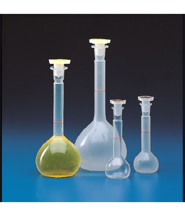 -Bình định mức nhựa có vạch chia màu trắng, với chất liệu Nhựa PP, PMP